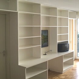 Herstellung und Einbau einer Bibliothek aus MDF lackiert.